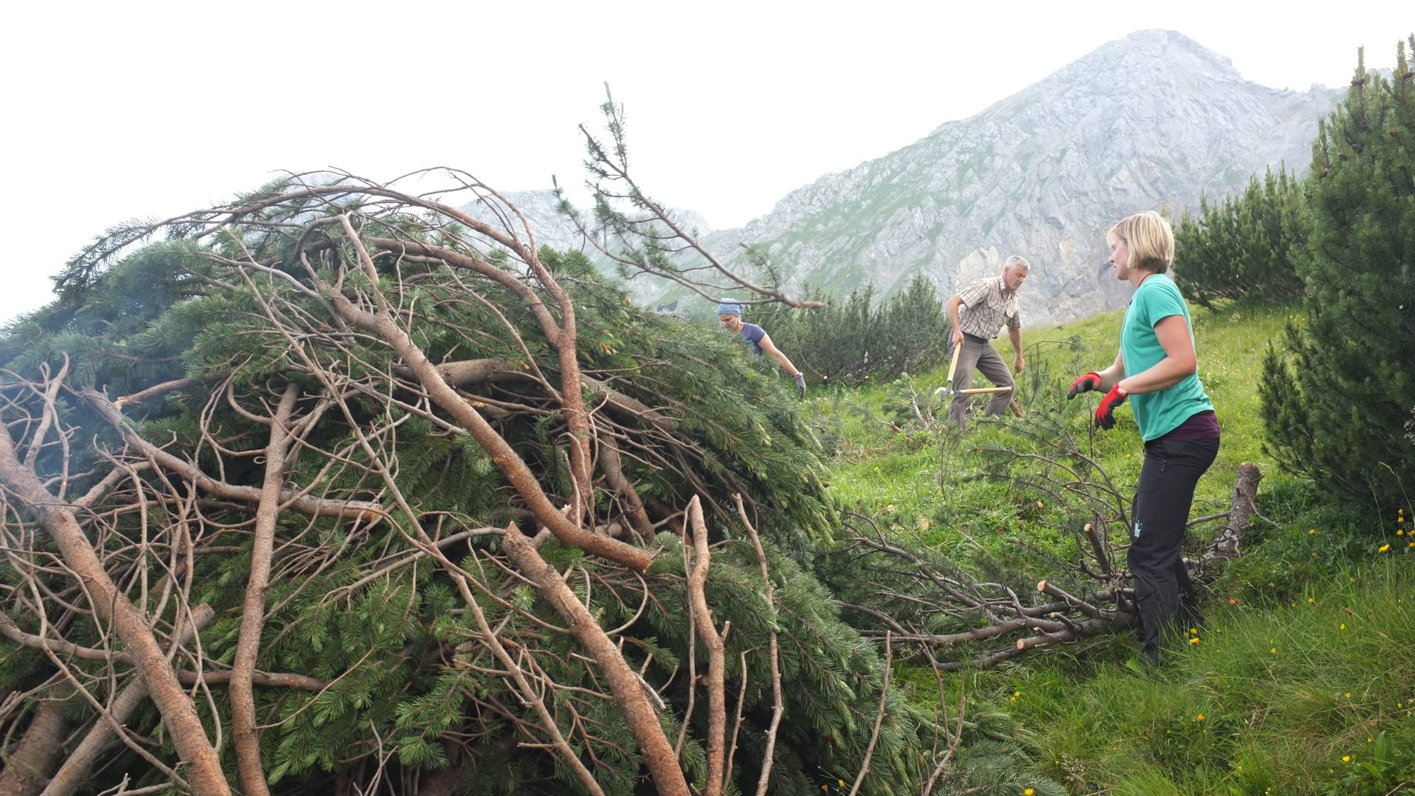 Wenn diese durchaus anstrengenden Arbeiten nicht immer wieder verrichtet werden, verbuschen die Almen nach und nach. Ohne intensive Nutzung breiten sich die Latschen immer stärker aus, verdrängen Gras und Kräuter und reduzieren die Artenvielfalt. Das macht die Flächen für eine Nutzung mit Rindern, Schafen oder Ziegen unbrauchbar. Ohne solche Maßnahmen wären die Almen in wenigen Jahren zugewachsen.