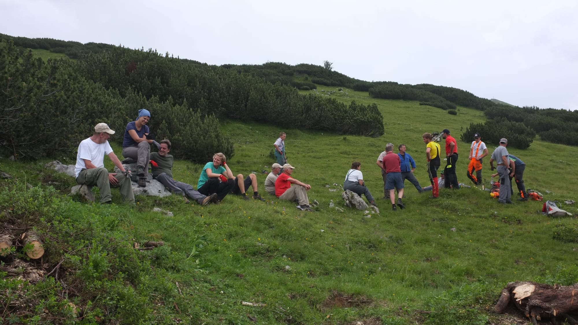 Wir haben zusammen mit den Almbauern zahllose Latschen geschnitten, aufgehäuft und dann verbrannt. Nach der Aktion wurden wir noch in die Eng für eine zünftige Brotzeit eingeladen. Insgesamt war es ein toller Tag, an den ich mich auch zehn Jahre später noch gerne erinnere.