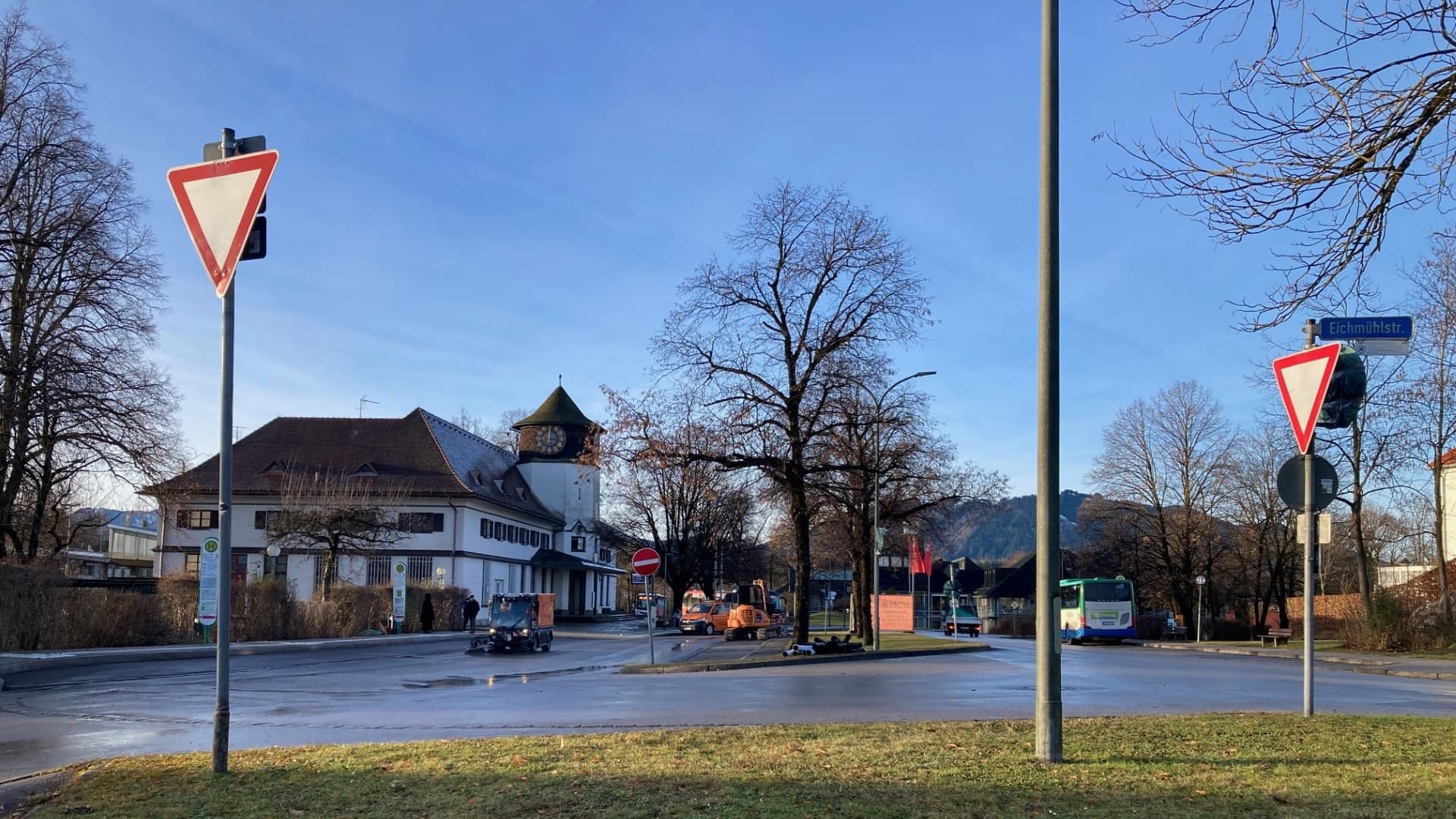 Die Straßenbauarbeiten vor dem Tölzer Bahnhof sind abgeschlossen. Auf dem Foto sieht man noch, wie gerade saubergemacht wird. In einer früheren Ausgabe des Tölzer Newsletters hatten wir bereits kurz über die Baumaßnahme berichtet.